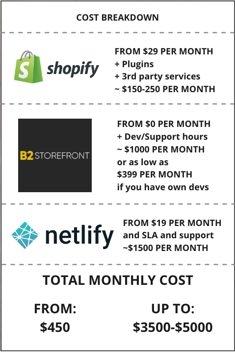 You have initial traction, ad spend, and marketing efforts are at scale where you outsource or have a relationship with at least part time working freelancer for your Store tech needs. Basically think about B2Storefront as a time cutting booster for any of your development efforts.